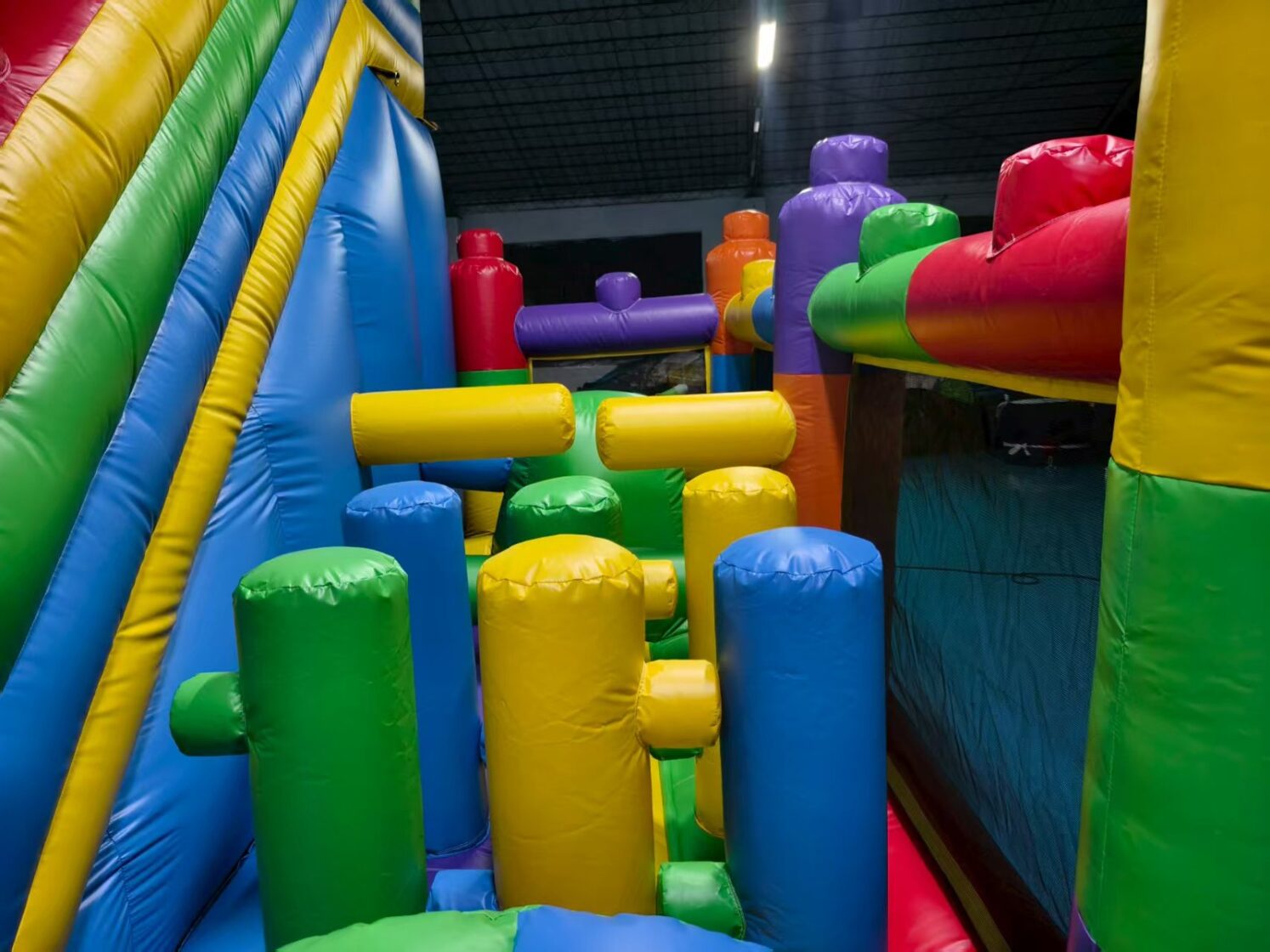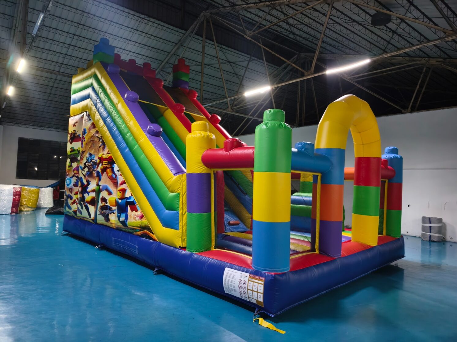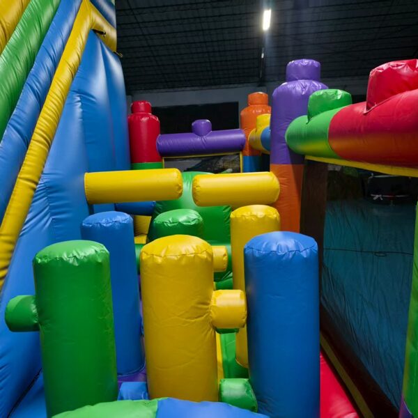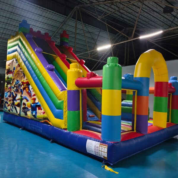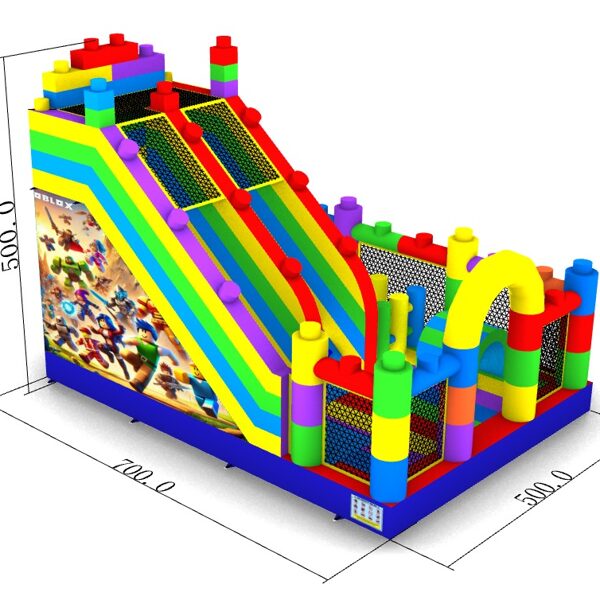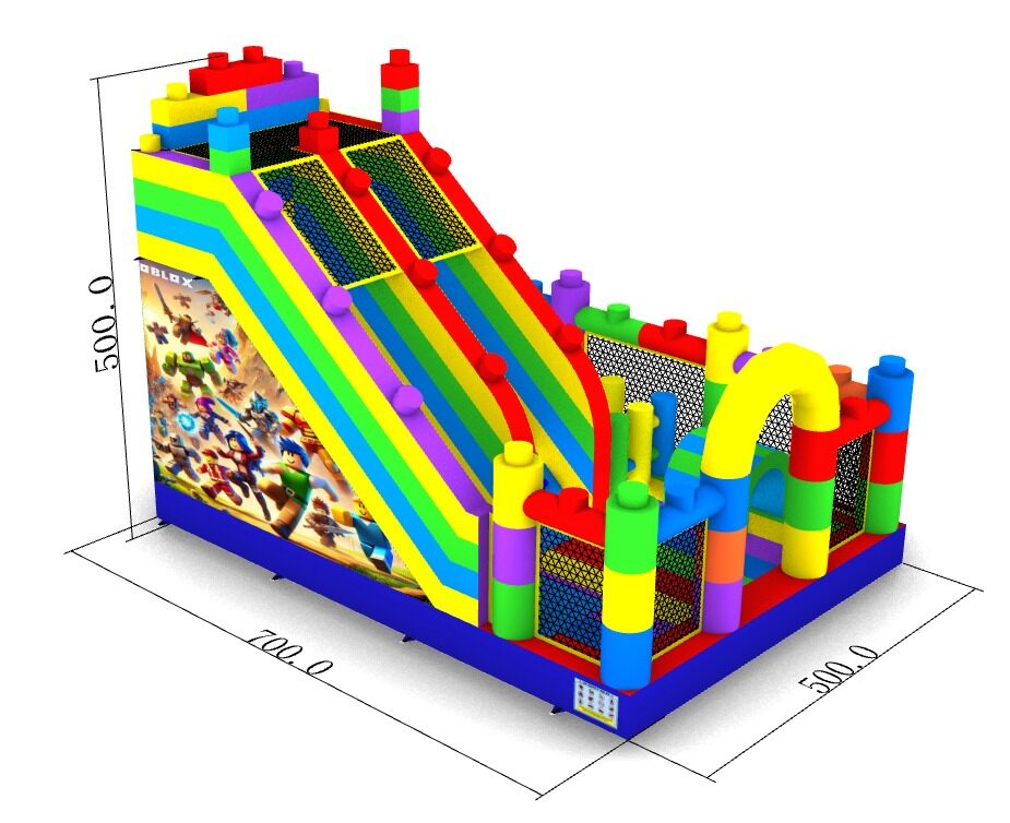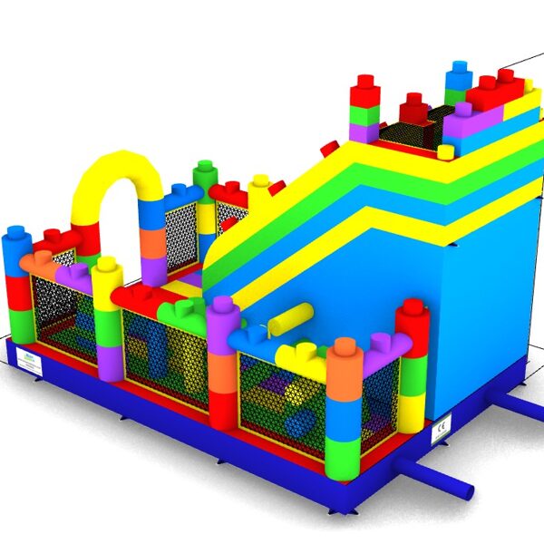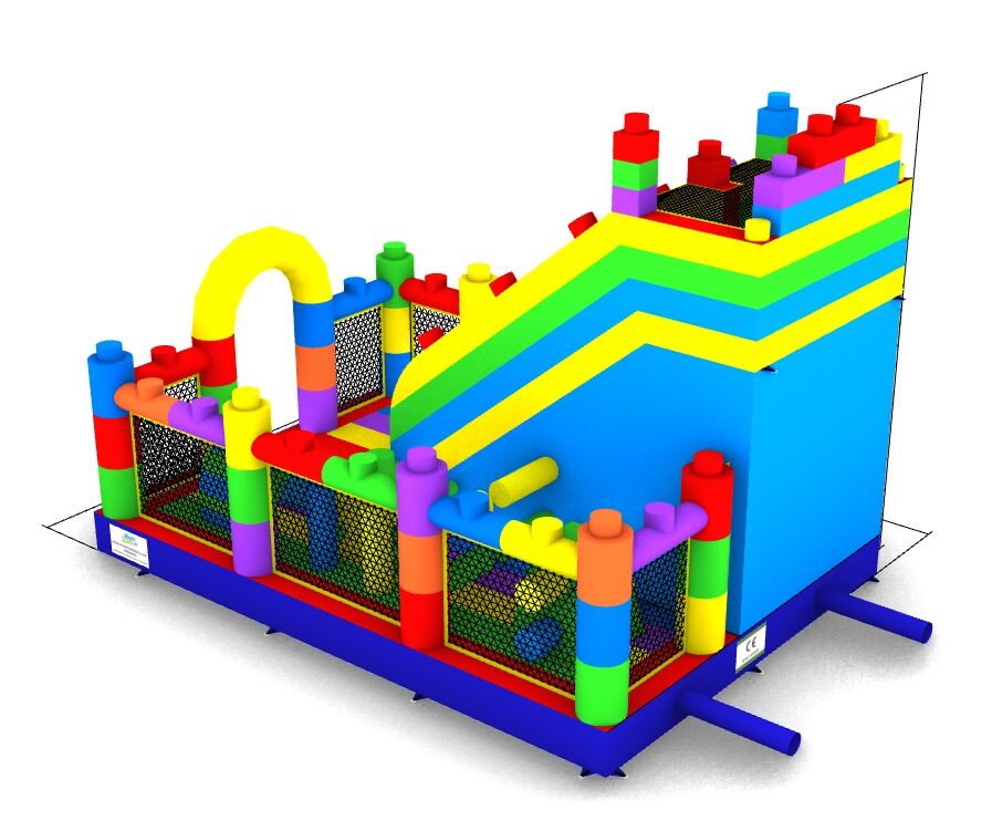 "Lego” modelī ir viena ieejas - izejas zona, ērtākai bērnu pieskatīšanai. Atrakcijas labajā pusē atrodas plaša lēkajāmā zona ar vairākiem šķēršļiem, kur bērniem spēlēties un slidkalniņa/trepju zona sniedz asas izjūtas lielākiem bērniem augstā nobrauciena dēļ.