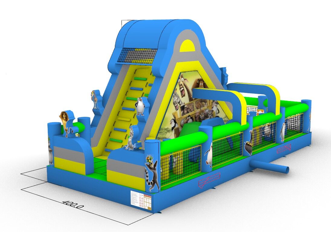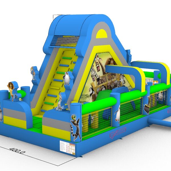 Madagaskara modelis ir veidots tā, lai tas veidotu sacensību garu un stafetes atrakcijas piedzīvojuma prieku. Pozitīvā lieta atrakcijā ir tā, ka nav no atrakcijas jākāpj ārā, lai veiktu apli. Viss nepieciešamais piedzīvojumu priekam ir atrakcijā – šķēršļu trase, divi slidkalniņi un lēkājamā zona.