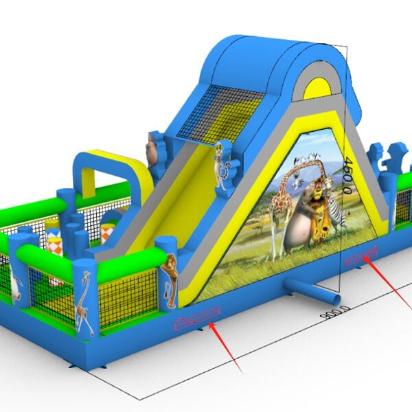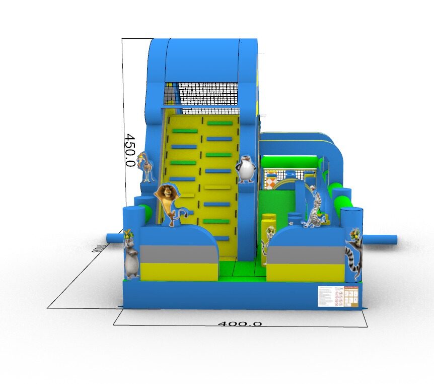 Rekomendējamais vecums no 3 gadiem, vienam bērnam nepārsniedzot 70 kg svaru un 160 cm auguma garumu, vienlaicīgi atrakcijā rekomendēts atrasties līdz 10 bērniem. Nomas komplektā iekļauts, komerciālai lietošanai paredzēts pagarinātājs, atrakcijai piemērots gaisa pūtējs un atrakcijas pārklājs.