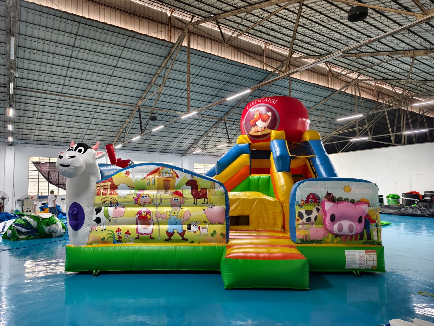 “Vistu ferma” atrakcijas modelis ir veidots tā, lai atrakcija būtu piemērota visa vecuma bērniem - mazākie atrakcijā nepazudīs, jo atrakcijai ir augstas aizsargmalas, bet lielie lēkās atrakcijas pūslī un dauzīsies starp atrakcijas šķēršļiem gūstot pozitīvas emocijas.